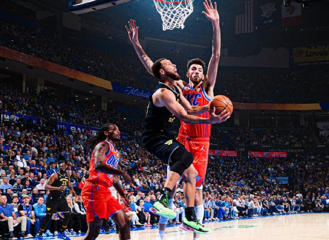 而库里似乎也受到了恶犯的影响,第二节5投0中一分未得,雷霆抓住机会,继续扩大领先优势,半场比赛战罢,雷霆63-44领先勇士19分。下半场比赛开始,易边再战,华莱士的45度角空位三分洞穿篮心,揭开第三节比赛序幕,追梦格林追身三分突施冷箭,还击一球,米切尔闪电突破犹如无人之境,轻松上篮擦板得分,库里的中距离起身小抛投也稳稳打进,切特制霸篮下,抡起双锤砸筐重扣技惊四座,哈腾的反击一条龙,单手劈扣也点燃全场。尽管勇士到了第三节,效率已经全面回暖,进攻越来越顺,但他们同样也防不住雷霆的攻势。